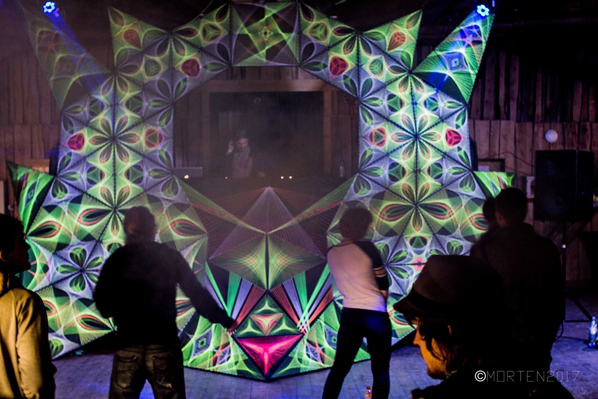 Tantsusaali äärtes oli kohapeal seotud mustrid postidel ning sissepääsu uksest algas 8m pikkune stringart tunnel, mis meelitas rahva juba kaugelt pealavani.